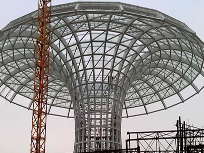 二、球形网架结构因其结构新颖,受力合理,自重轻、用钢量低等优点。如大型体育场馆球形吉林螺栓球网架、公共场馆球形网架、电厂吉林螺栓球网架、水泥工业球形网架、仓储物流球形网架、吉林干煤棚工业球形网架、吉林收费站吉林加油站球形网架、展览中心、影剧院、商场、航站楼、候车厅、工厂吉林车间、仓库、电视塔等球形螺栓球节点网架。国内球形网架结构主要分为:吉林焊接球节点网架及螺栓球节点网架两种。螺栓球节点网架其构件工厂内加工量较大,现场安装便捷,适用于现场工期紧,吉林施工条件、用电量受制约,网架形状复杂、吉林杆件定位困难的异形结构。螺栓球节点球形网架系统基本由吉林杆件、螺栓球、支撑支座等组成。按照节点形式可分为交叉吉林桁架体系、四角锥体系、三角锥体系等。支撑方式多为固定支座支撑。对于大面积、大跨度及有特殊受力或伸缩要求的网架结构可采用橡胶支座、滑移支座、球铰支座等支撑形式,以满足结构自身的受力稳定、均衡,便于内力释放等设计要求。